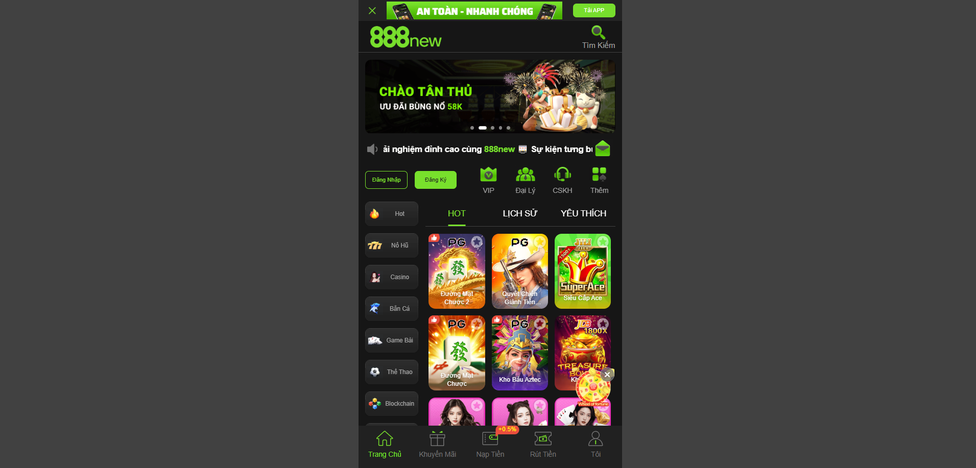 Chương trình khuyến mãi hàng ngày, hàng tuần và hàng tháng. Giá trị lên tới 88.000.000, nạp đầu tặng 100%, hoàn trả tới 3%.